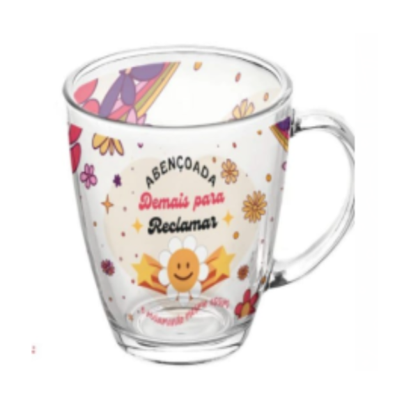 CANECA VIDRO 330ML ESTAMPAS "FRASES"