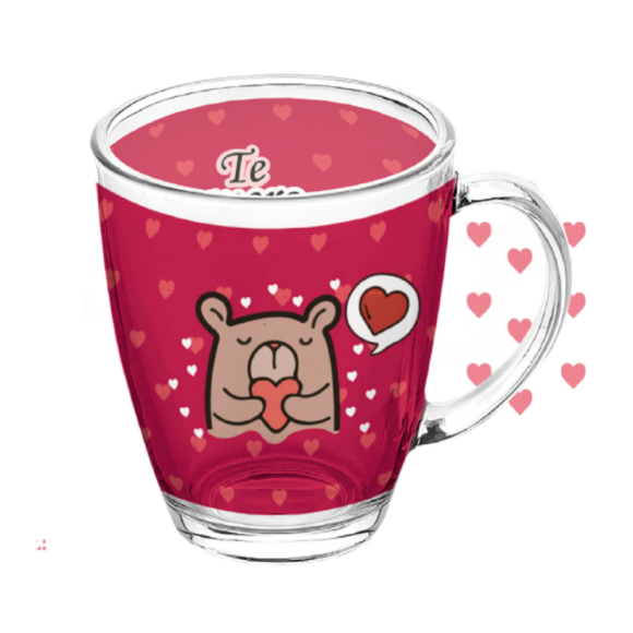 CANECA VIDRO 380ML ESTAMPAS "LOVE HEART"