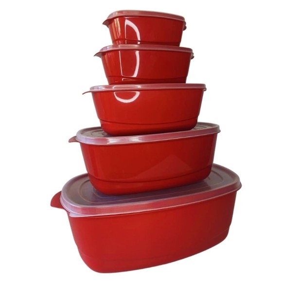 JOGO 5 POTE PLASTICO RETANGULAR C/REDINHA VERM
