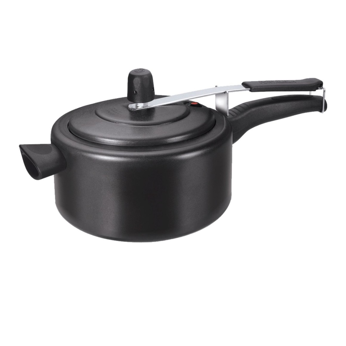 Panela de pressão Alumínio Fortaleza, com alças e cabos em baquelite, anel de vedação e válvula de segurança em silicone.