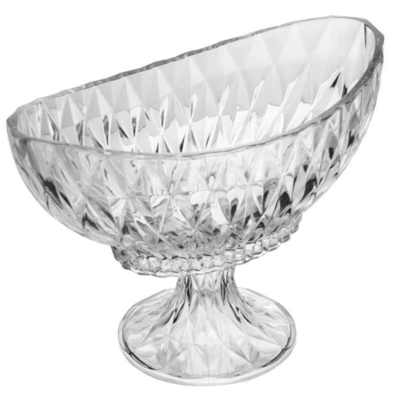CENTRO MESA VIDRO C/PÉ 28X15CM DIAMOND OVAL