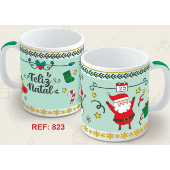 CANECA CERAMICA 320ML RETA "NATAL" VERDE