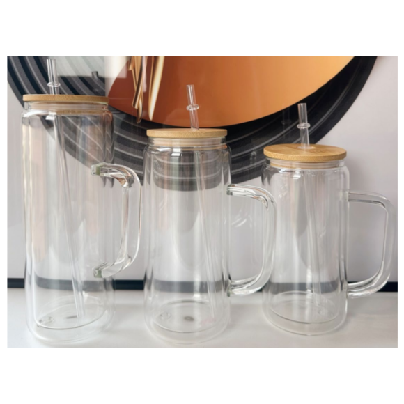 CANECA VIDRO 530ML C/CANUDO VIDRO TAMPA-BAMBU