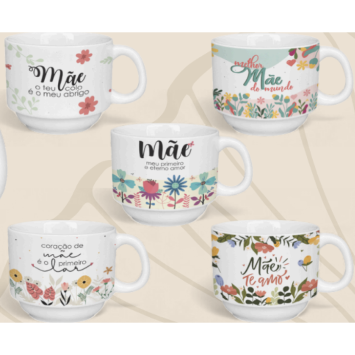 CANECA CERAMICA 200ML EMPILHAVEL FLORAL