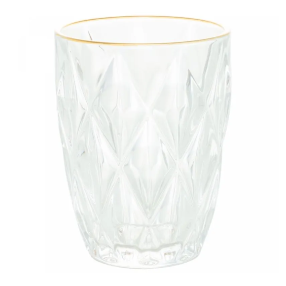 JOGO 6 COPO VIDRO 270ML DIAMOND BORDA OURO