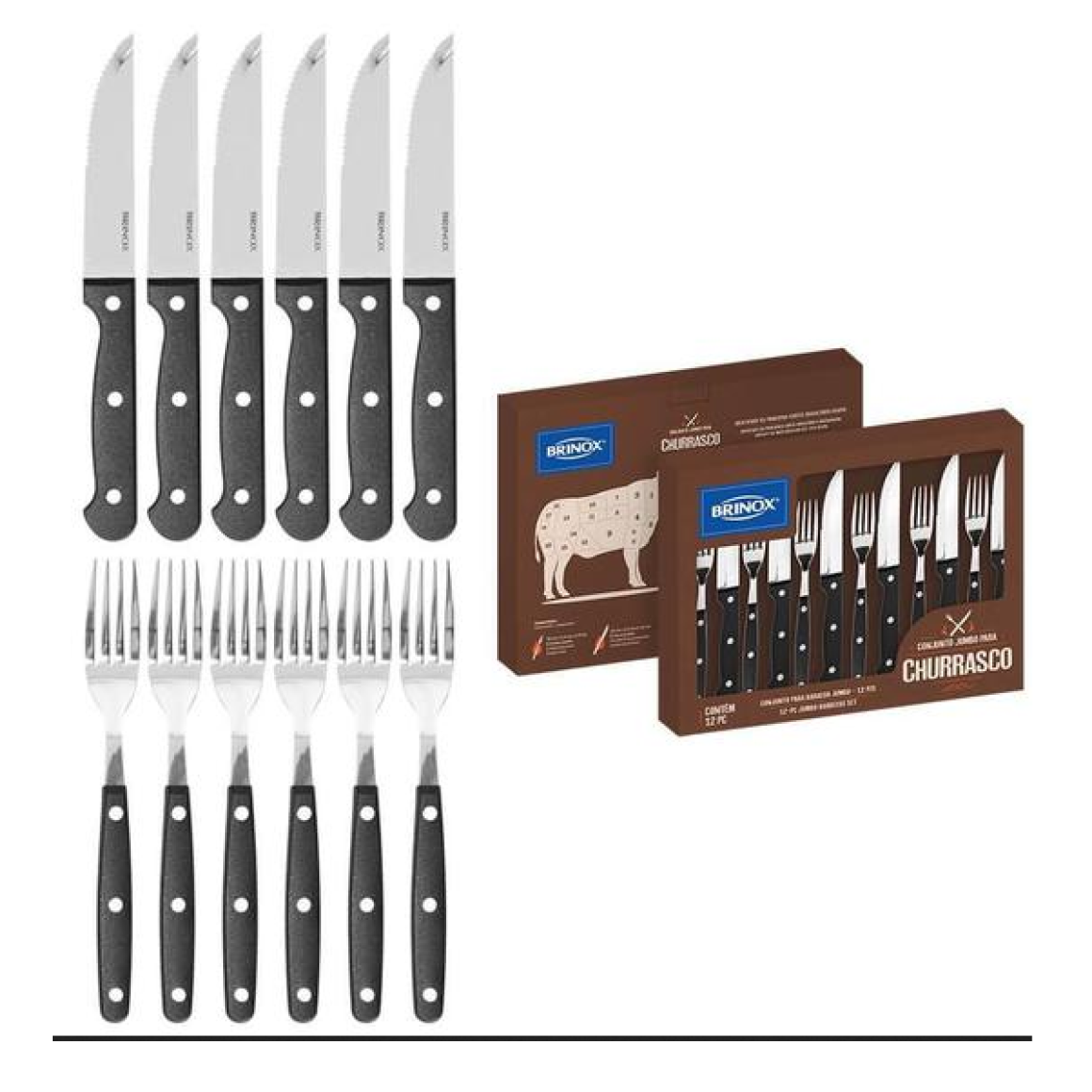 2. JOGO 12 CHURRASCO JUMBO PRETO