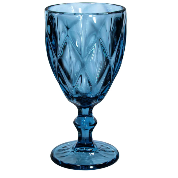 JOGO 6 TACA VIDRO 325ML DIAMOND AZUL
