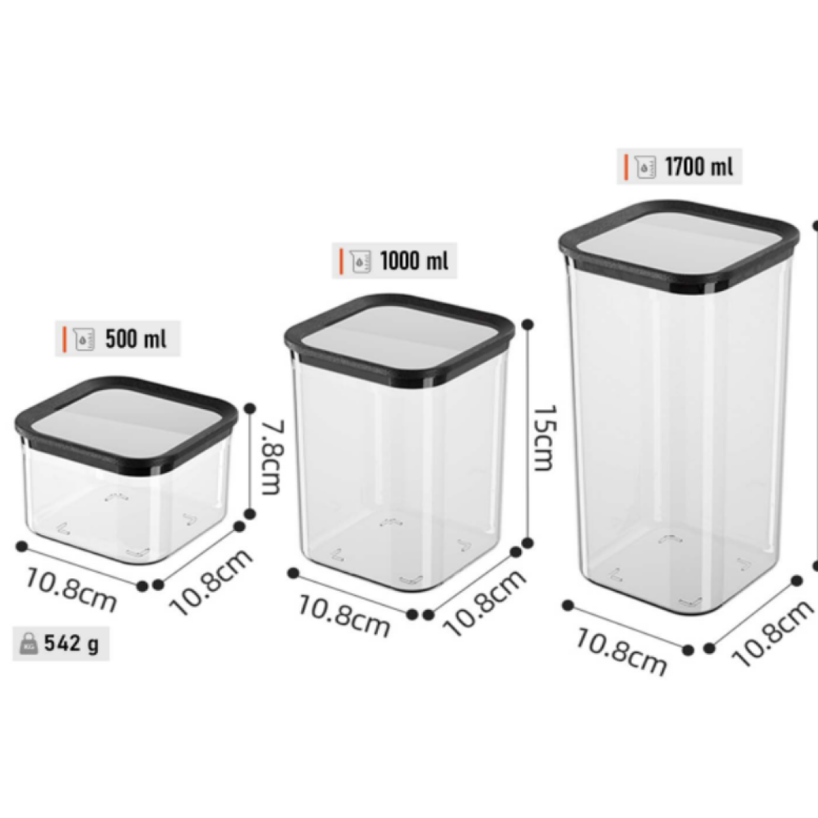JOGO 3 POTE ACRILICO QUADR 500/1000/1700ML