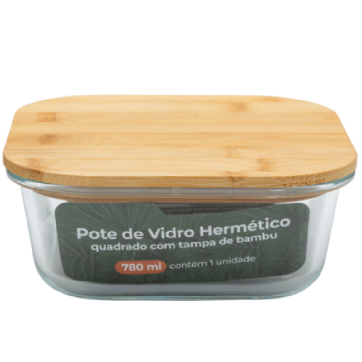 POTE VIDRO 800ML QUADRADO TAMPA-BAMBU