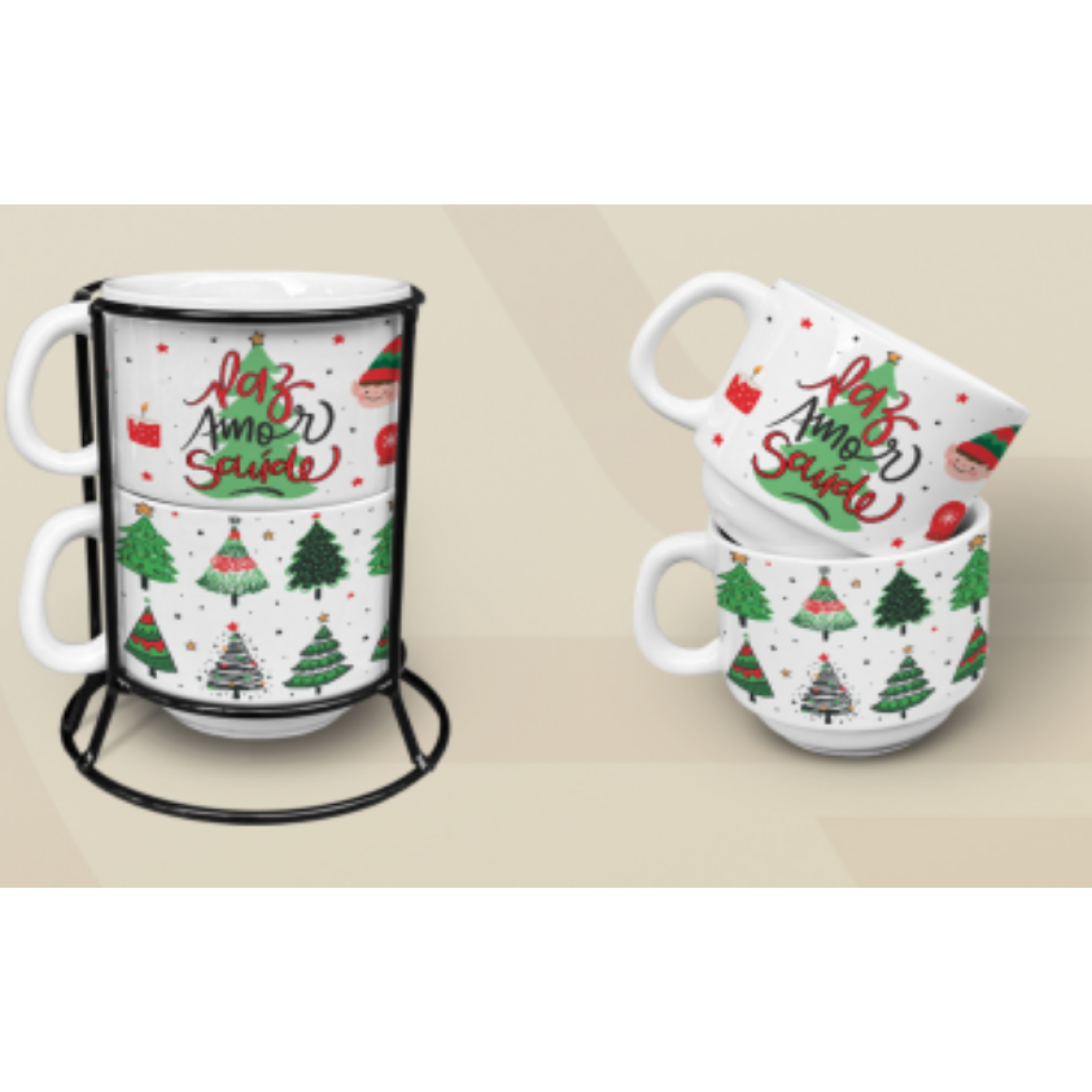 JOGO 2 XICARA CERAMICA 200ML NATAL C/SUPORTE