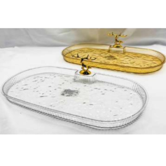 BANDEJA ACRIL CLEAR/OURO 32X18CM C/ENFEITE