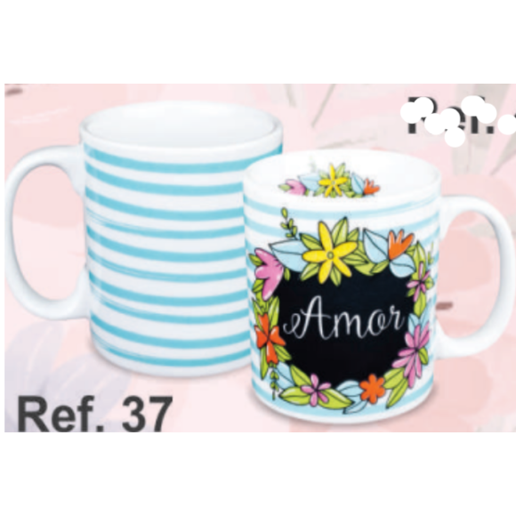 CANECA CERAMICA 320ML RETA "FLORAIS" AMOR